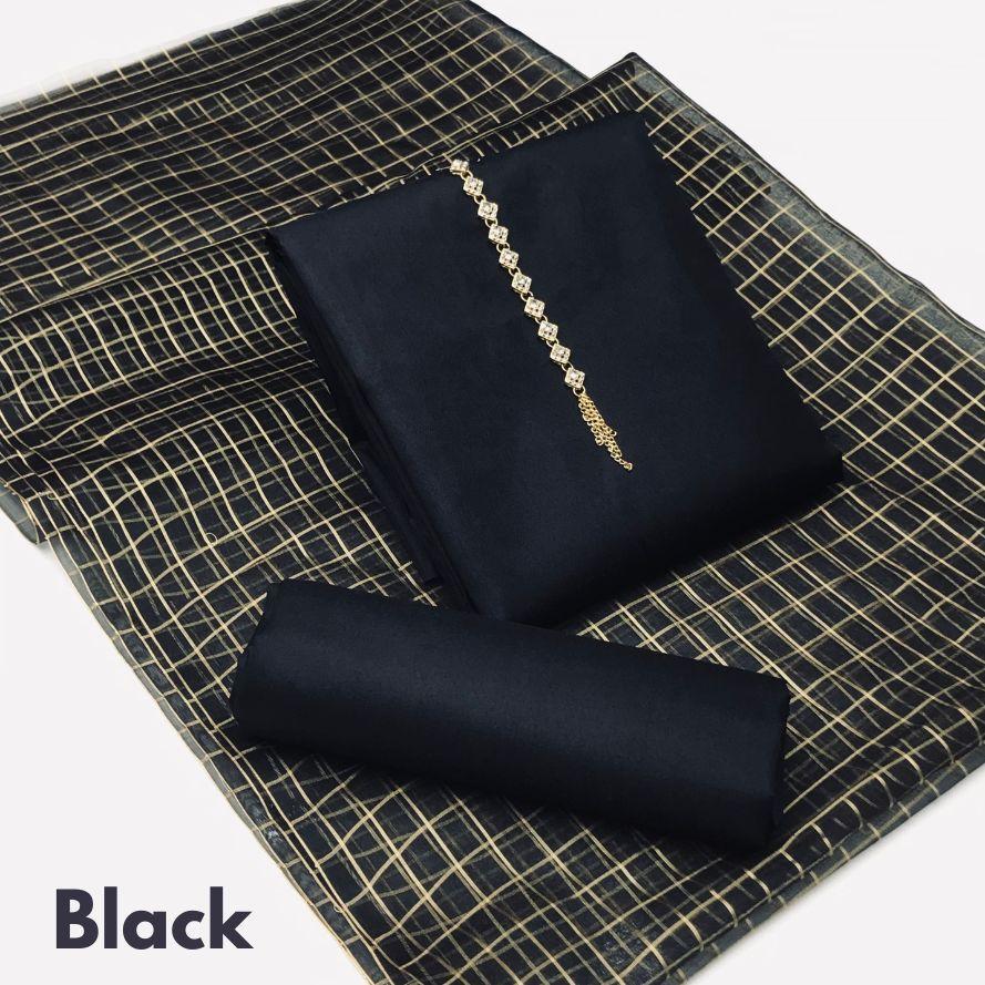 3-Piece Katan Silk Unstitched Suit with Calligraphy Dupatta